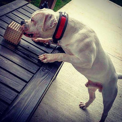 Fits perfectly on all large breeds, like Pitbull, cane corso, American Bully, American Bulldog, Presa canario, Great Dane, Rottweiler, Boxer, Amstaff, Staffordshire terrier, Bullmastiff, Doberman, and many more..